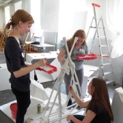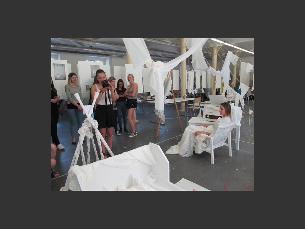 Projekt se připravovat od loňského podzimu, první pracovní setkání proběhlo na půdě naší školy a pokračovat bude v říjnu v Německu. Pro samotnou realizaci jsme připravili téma POKOJ PRO THEU WELTNER. Hlavní inspirací byla její tvorba, zahrnující instalace v typické bílé barevnosti.
