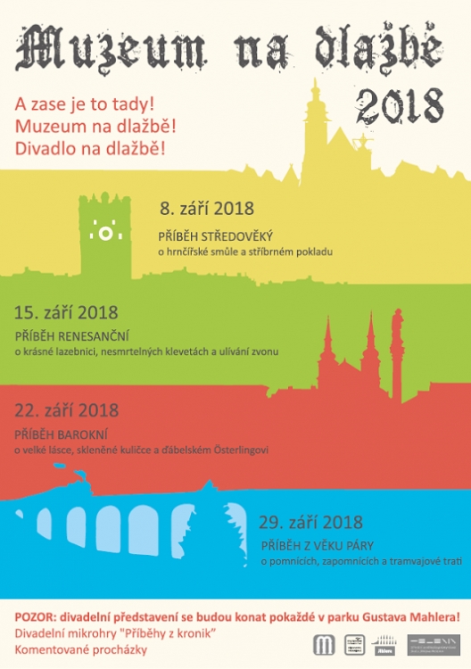 Letos trochu jinak: Historie v kostce a staré příběhy na nové dlažbě! Najdete nás každou sobotu v Parku Gustava Mahlera. Poněkud detektivní pozvánka k letošnímu sbírání starých příběhů z jihlavské dlažby. Ani letos nebude chybět listování letitými kronikami, ale hrát se nebude přímo na dlažbě před muzeem! Víc nesmíme předem prozradit. Nenechte si ujít samozřejmě i zase něco navíc: tentokrát bonusy v nečekaně obří dlažební kostce! Projekt je stále určen všem, koho lákají světla a stíny minulosti a kdo rád objevuje, jaké bylo město a jací byli lidé, kteří stejnými ulicemi, jako my dnes, procházeli po dobu bezmála osmi minulých staletí.