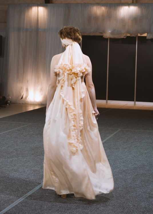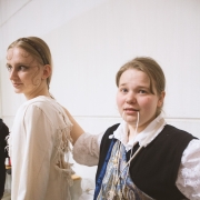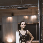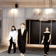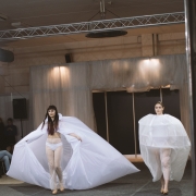 V hlavní kategorii ODĚVNÍ MATERIÁL soutěžilo 40 vstupů, 3. místo obsadila studentka 3. ročníku Anna Rozmarínová s kolekcí Večerní róba. Modely zhotovila z pravého hedvábí a ukázala sofistikovanou variantu večerních šatů inspirovanou dámským domácím oděvem či noční košilí.